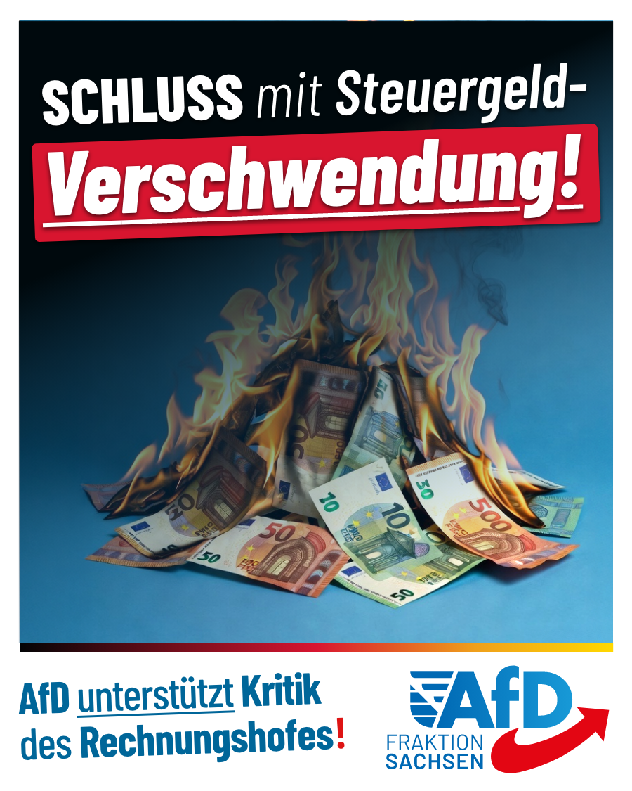 Die finanzielle Situation des Freistaates Sachsen ist dramatisch. Es wird in Zukunft nur dann genug Geld für Kindergärten, Schulen, die Polizei, Feuerwehr und die Pflege vorhanden sein, wenn die Regierung endlich Ausgaben-Disziplin zeigt.