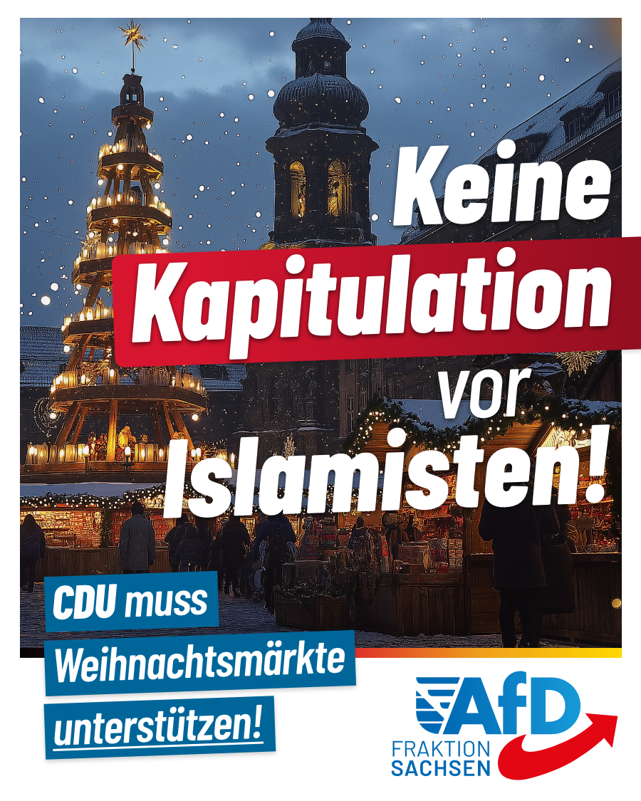 „Die CDU und ganz besonders Armin Schuster haben längst vor Islamisten kapituliert. Dass die Regierung nun tatenlos dem drohenden ‚Kollaps der Weihnachtsmarkt-Kultur‘ zusieht, tut mir im Herzen weh.