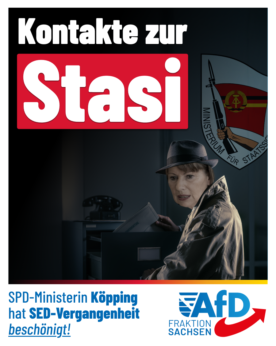 Eins steht für uns allerdings jetzt schon fest: Köpping, die ein AfD-Verbot fordert, hat aus ihrer SED-Vergangenheit nichts gelernt. Solche Politiker wollen die Bundesrepublik vielmehr zu einer DDR 2.0 umbauen und sind deshalb untragbar.