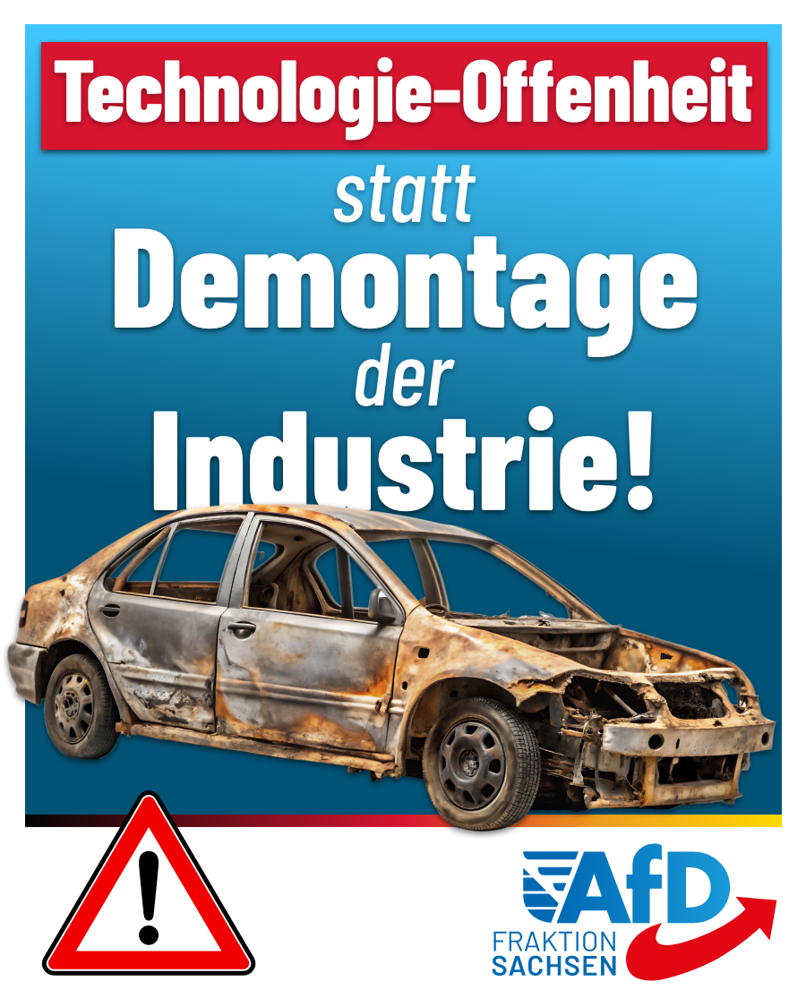 Das Endergebnis dieser desaströsen Wirtschaftspolitik ist nun, dass Demontage als einziges Zukunftsfeld gilt. Das kann es nicht sein. Ich wünsche mir, dass in Sachsen ohne staatliche Einschränkungen hochwertige und zugleich bezahlbare Fahrzeuge gebaut werden können – eben Volkswagen im ursprünglichen Wortsinn. Deshalb fordern wir Technologie-Offenheit!